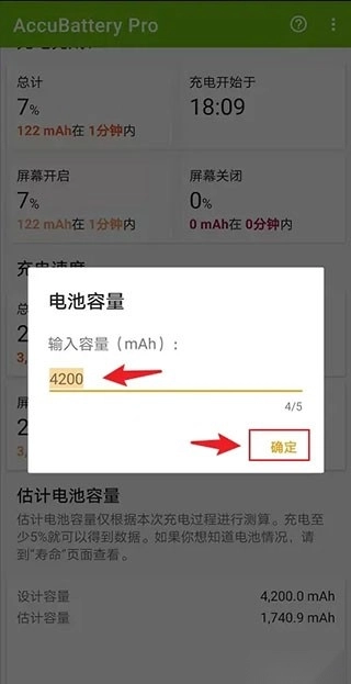 先输入手机的电池容量,再点击“确定”按钮。(该容量信息可通过查看手机的配置参数获取)