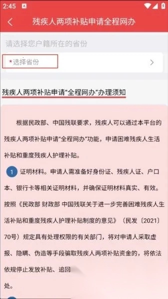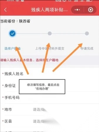 2、可在线申请残疾人两项补贴,依照步骤操作就行,申请时需要提供本地身份证与二代残疾人证。