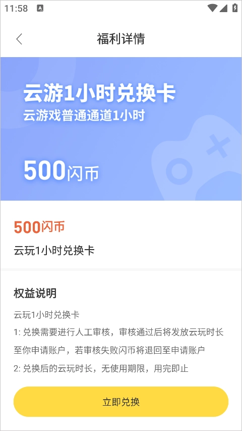 4、最后可以在道具商城通过闪玩币兑换免费云游戏时间。