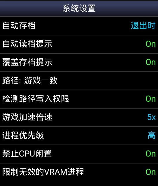 在主界面点击“设置”就能进入设置页面,在这里可以调整游戏的视频相关参数,还能使用模拟器的存储档功能。要是想让游戏性能达到最佳,建议把进程优先级设置为最高。