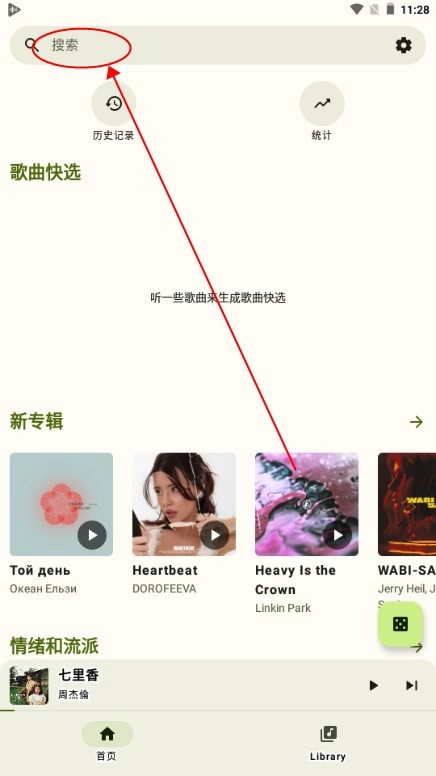 1、点击顶部的搜索框,在这里能看到搜索YoutubeMusic的相关内容。
