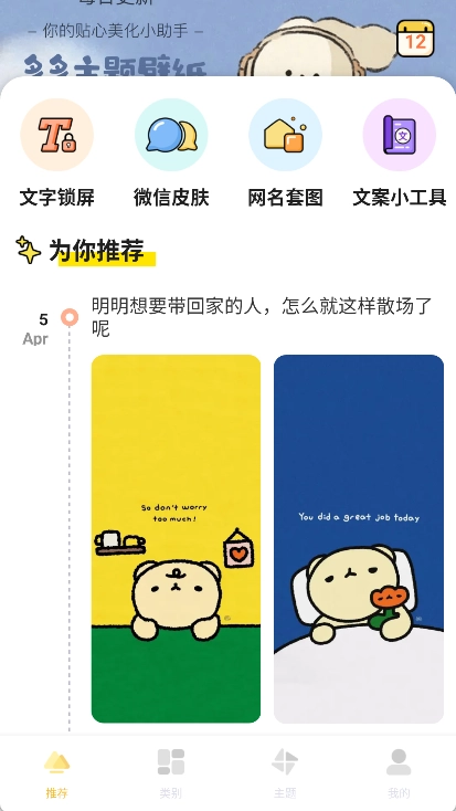 多多主题壁纸是一款十分出色的手机壁纸美化应用,能让大家便捷地浏览和设置心仪的壁纸,让手机桌面每日都洋溢着新鲜感。它还提供了种类繁多的壁纸资源,涵盖动漫、风景、萌宠等类别,甚至有大量动态壁纸资源,让桌面更显生动有趣。并且所有壁纸图片均为高清无水印,保证我们能获得极佳的视觉体验。另外,表情包、头像、小组件等资源也极为丰富,可供我们自由定制!