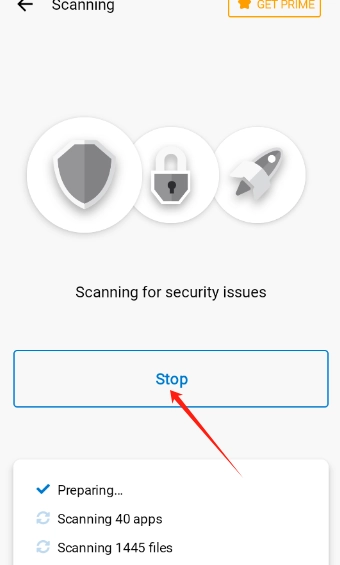 4.授权完成后扫描就会立即开始。要是想结束扫描,点击stop按钮即可。