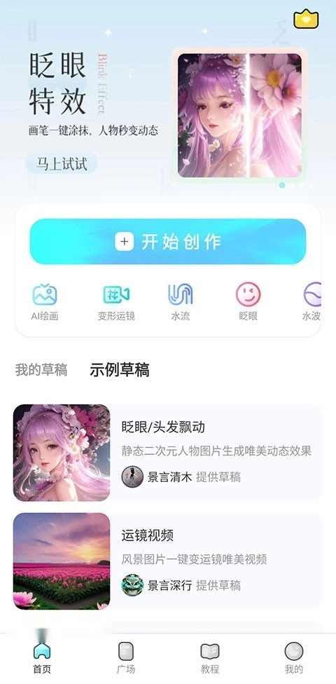 2、接着进入首页,能看到不少热门特效,点击“开始创作”按钮就行。