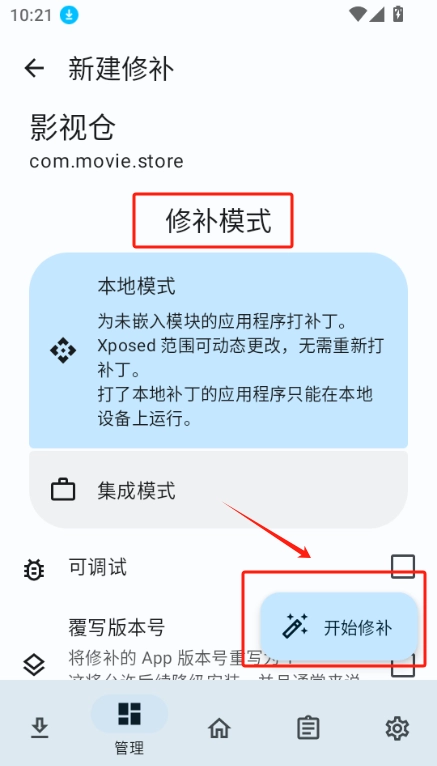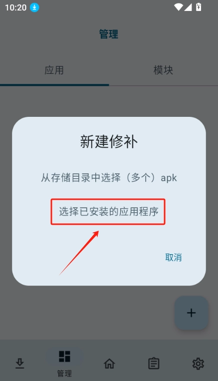 选择应用:可从应用列表里挑选已安装的应用来进行修补,也能选择存储目录中的安装包文件。