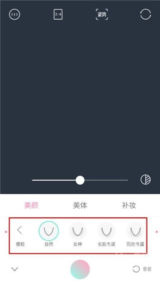 3. 若有需要,可点击瘦脸功能,该功能支持手动调整与自动瘦脸两种模式。