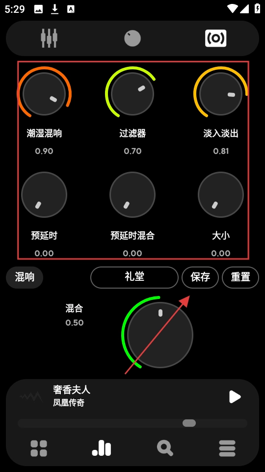 3、选定场景后,对应的音效参数会自动适配调整,若觉得效果满意,点击【保存】按钮即可。