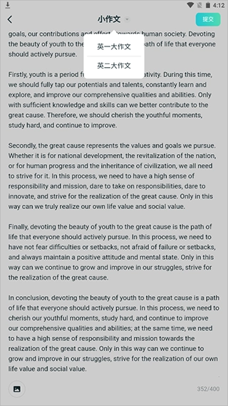 4、需要注意的一点是,提交作文时如果文中出现英文以外的字体,将无法成功提交。