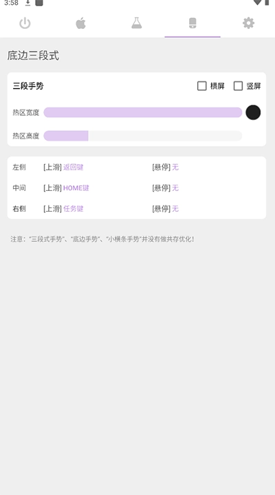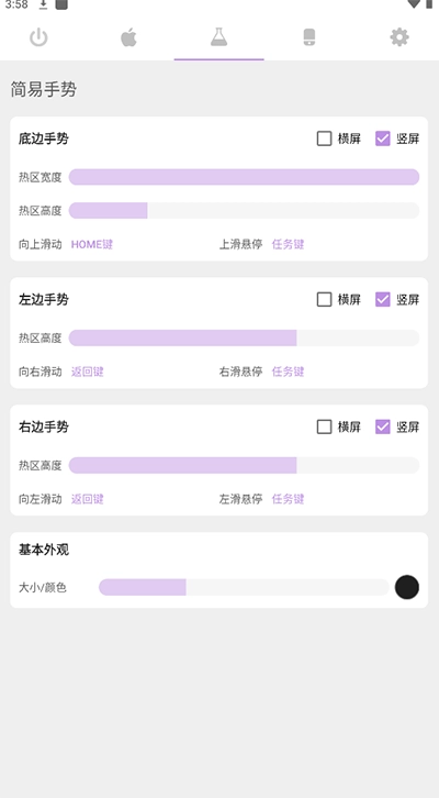 3、该软件具备多种手势操作功能,用户可在此处对苹果手机底部的小横条进行设置。
