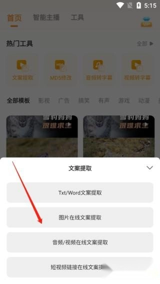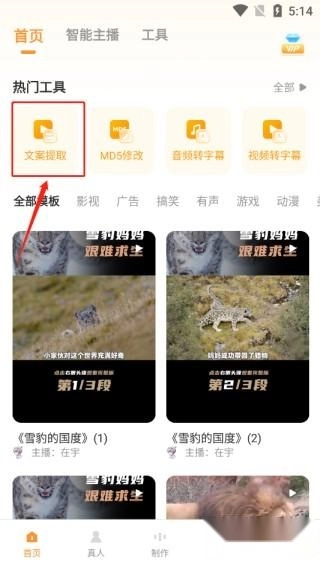 1、首先打开配音鸭,进入首页,找到“文案提取”