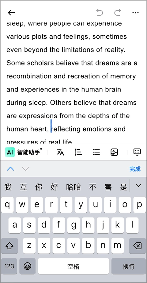 1、“AI写作”功能:助力用户理清思路,提升表达水平。当用户在写作过程中遭遇瓶颈时,可借助此功能获得辅助,让写作流程更具效率。