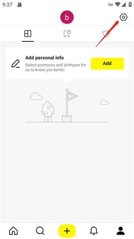 3、进入设置:在个人界面的右上角点击设置图标。