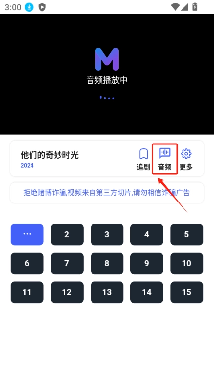 3.选到自己喜欢的影视剧后,直接点击播放就行。播放时点击音频,就能进行音频播放。