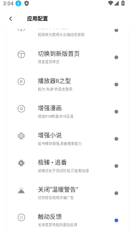 5.此外,切换儿童模式、视频库加强、增强小说、极臻追番等增强配置,均可在个人中心右上角的设置入口进行调整。
