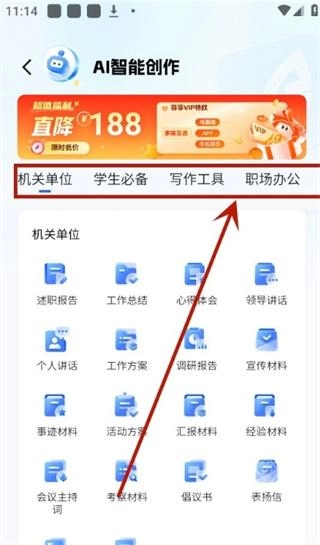 2、在AI写作界面里,您能够依据自身需求灵活挑选写作类型,这些类型覆盖了机关单位、学生群体、职场人士等各类不同场景。