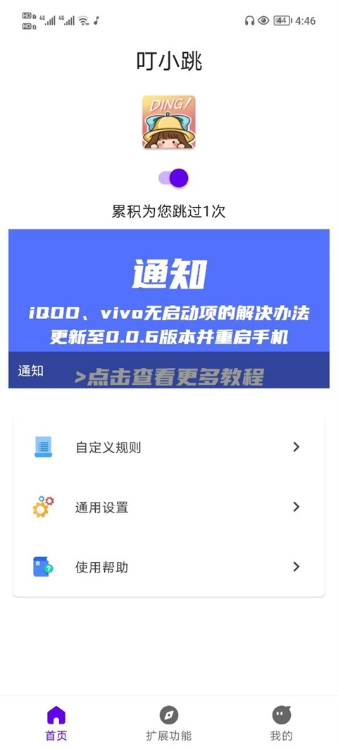 5、完成设置后回到主界面,这时跳过广告的功能就已经开启了,它会自动跳过应用的启动广告。