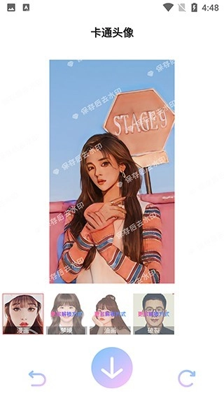 3、图片已自动转换为漫画风格,点击屏幕底部进行保存并去除水印(注意,若出现订购会员提示,直接关闭,随后点击观看视频即可保存图片)。
