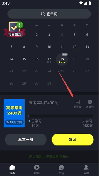 2、在口语页面点击练单词