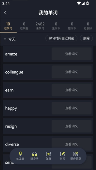 2、查看已学习单词即可