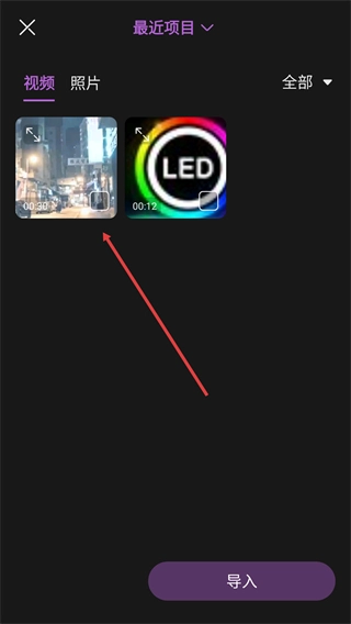 2、在【最近项目】的视频列表中,选中目标视频素材,准备将其导入剪辑流程。