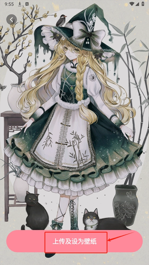 2、点击后将直接跳转至手机相册,于相册中挑选心仪的壁纸,随后点击上传并设为壁纸。